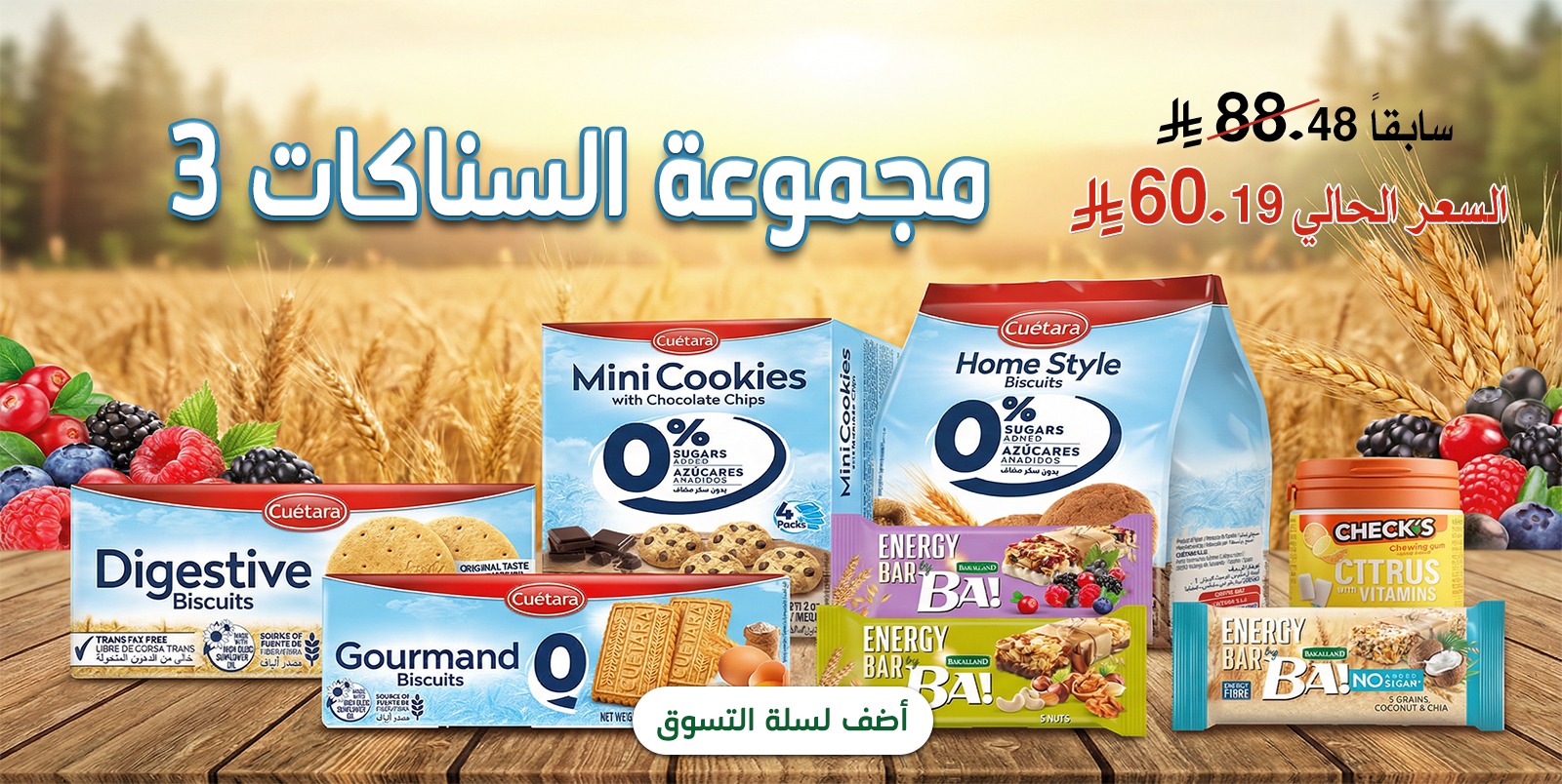 بسكويت محشو بطعم الشوكولاتة الغنية، يجمع بين القوام المقرمش وطعم الشوكولاتة اللذيذ وجبة خفيفة ممتعة في أي وقت من اليوم مناسب للأطفال والكبار. - -37%1عسل 250 / 1 موسلي مكسرات مع العسل /1 باكلاند فيت جوز الهند والموز/ 1 شوكو فليكس/ 1 بسكويت هوم ستايل بدون سكر مضاف/1 بسكويت دايجستيف بدون سكر مضاف/ 1 بسكويت جورماند بدون سكر مضاف
